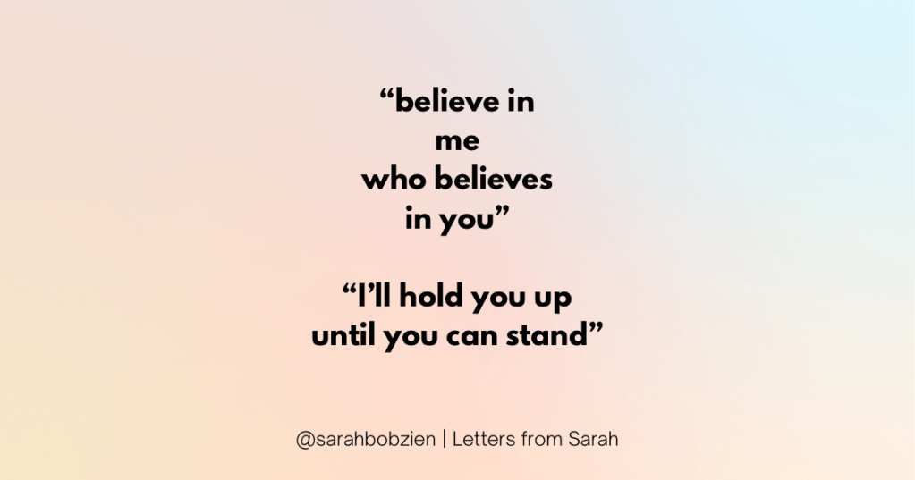 This is for the cheerleaders, mentors, friends, and loved ones who’ve held us up, cheered us on, until we could stand on our own again.